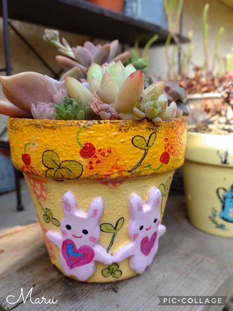 可愛いリメ鉢の中で、可愛い開花(✿´∀`✿)