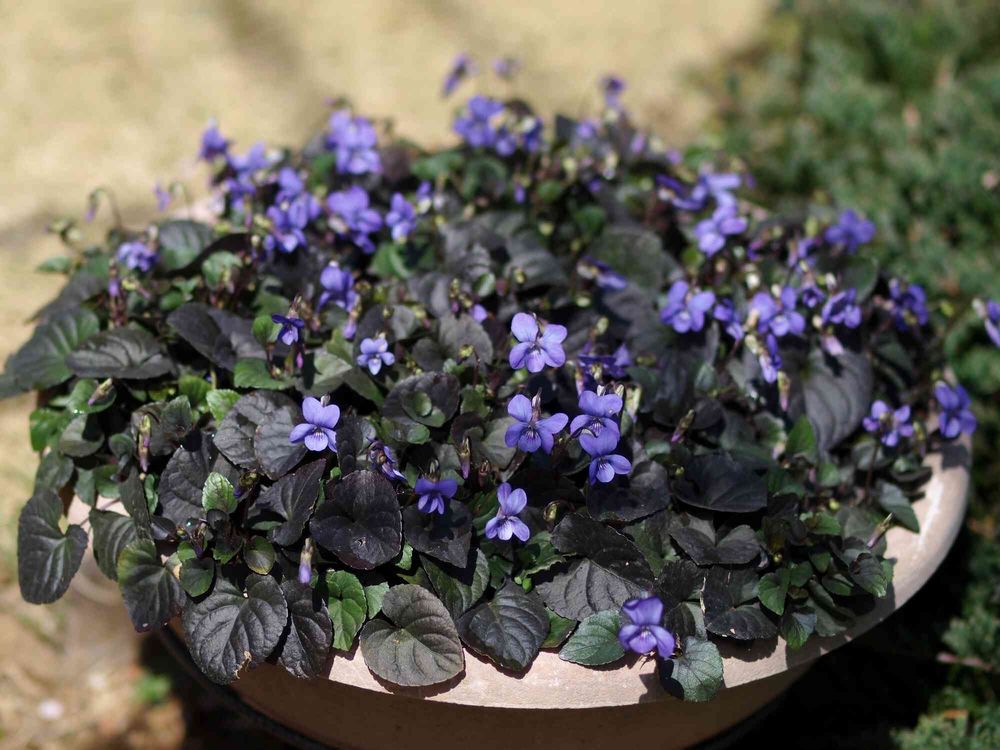 この鉢は、近所の花友さんから、カラーを頂いた時に入っていた器なんですよ。 径35cnで大きいですが、深さは20cmくらいです。 ちょうど、あちこちに黒葉スミレが出てましたので、まとめただけなんです💦