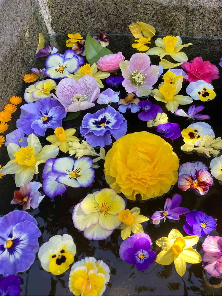 やっちゃんさんの花手水なの〜𓂂✦*🇸✦*🇺✦*🇹✦*🇪✦*🇰✦*🇮✦*