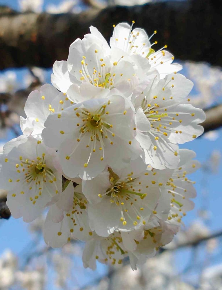 今日、咲いたばかりの 🍒サクランボの木