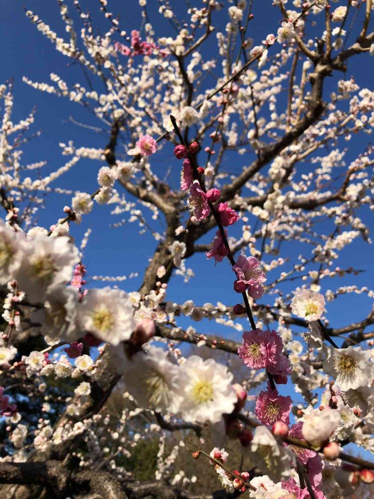 同じ木に紅梅と白梅が❣️珍しくないですか?びっくりでした😍😍調べたら源平咲きというんですって‼️たまにはあるみたいですよ🥰