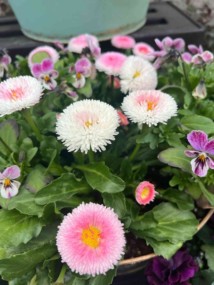 デージーとビオラの寄せ植え モリモリになってとってもラブリーになりました。これもこの前水切れさせてしまったけどふっかつしました。ビオラの名前は忘れましたけどね〜