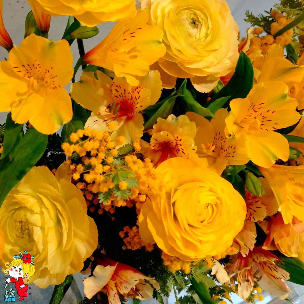 お出かけ先でビタミン💛🧡たっぷりのお花たちと出会いました。大好きなミモザも😆。元気パワーをお届けします。