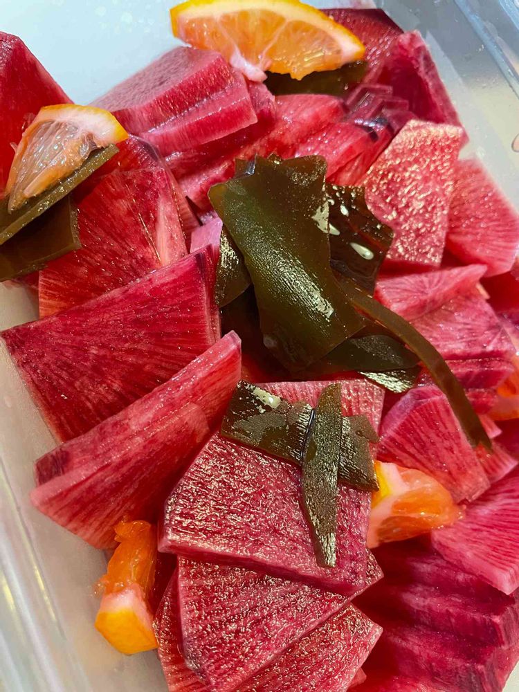 道の駅で赤大根買ったので、久々にお漬物作りました。パリパリ美味しかったです♪