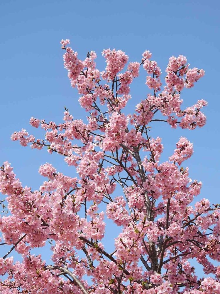 青空とコラボ❗濃いピンクの花が素敵な満開の🌸河津桜🌸