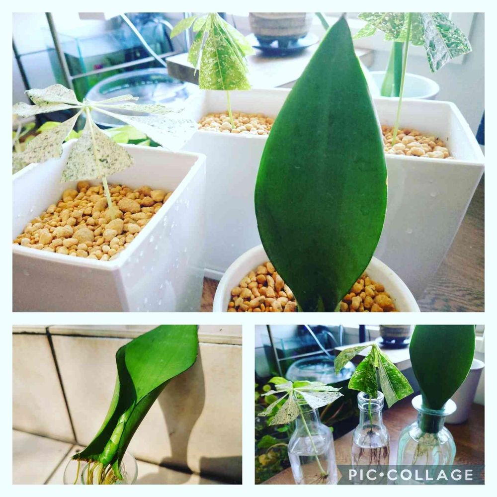 パキラミルキーウェイ、サンスベリアシルバーキングの水挿しからの鉢植え🙆