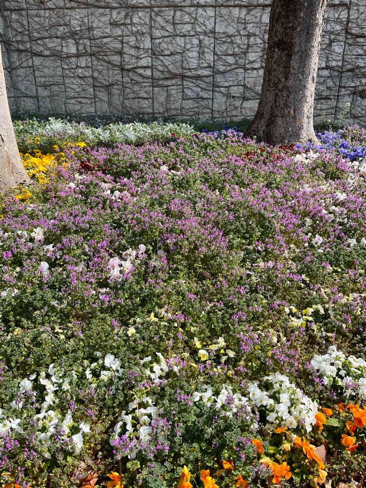 きれいにビオラ パンジーが植え込んである中にとっても綺麗と思ったらホトケノザまでが生えてました💦