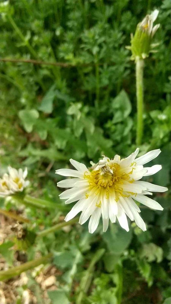 近所の畑の際から飛び出していた白いタンポポ🌼