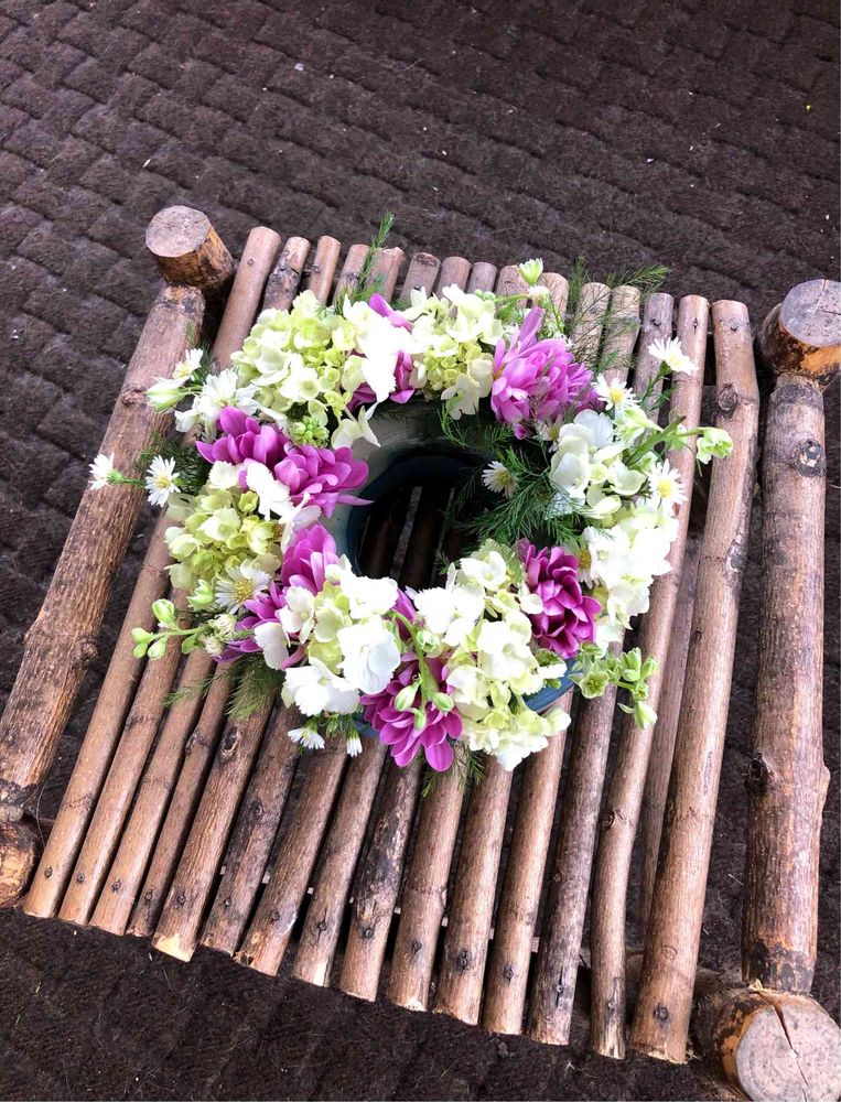 お花器の話〜ドーナッツ型に生ける色々なお花。うん、行けそうですね😆👍💗