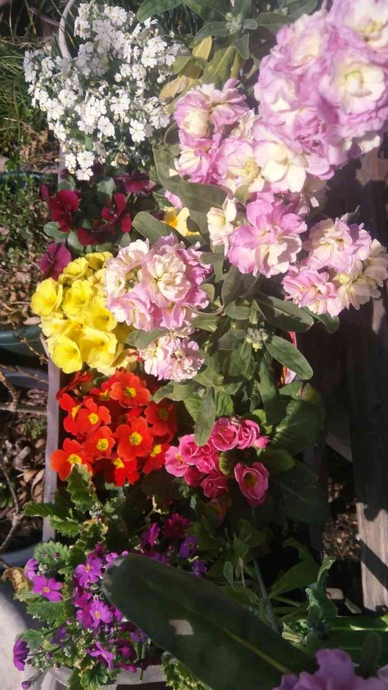 八重ストック、マラコイデスプリムラジュリアン、パワジー💛♥️💜🌸🌼