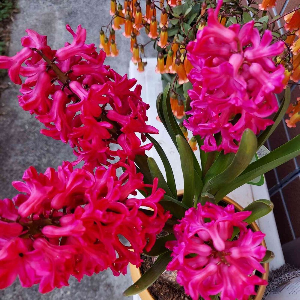 3個の球根から5個も花が咲きました‼️1本は切り花にしてキッチンに飾りました❤️
