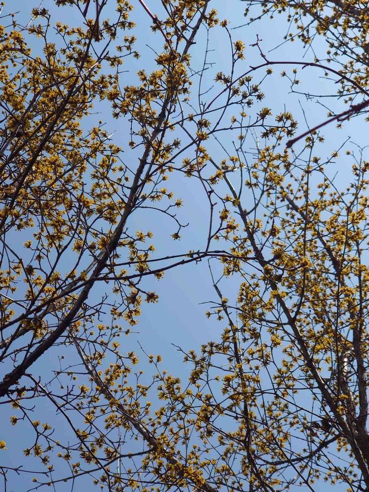 裏山のサンシュユが今日も元気をくれます