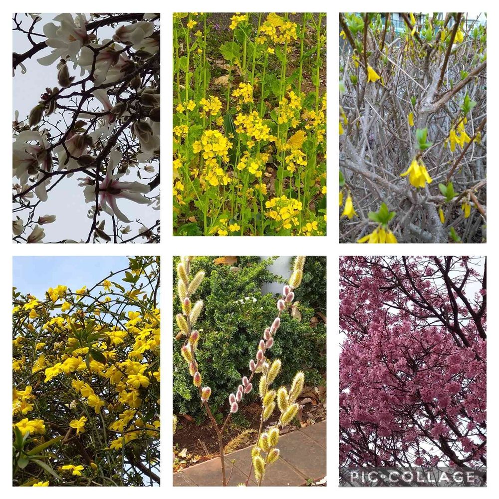 通院途中に春を見つけました🥰コブシ、レンギョウ、黄梅、菜の花、ネコヤナギ、早咲きの桜でした💖🥳