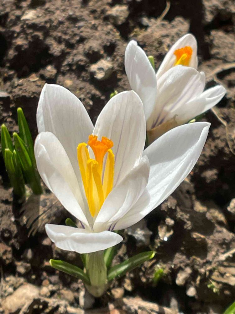 クロッカス白。今日、白花が咲き始めました♪クロッカスの中でもひときわ可憐でいいですね。