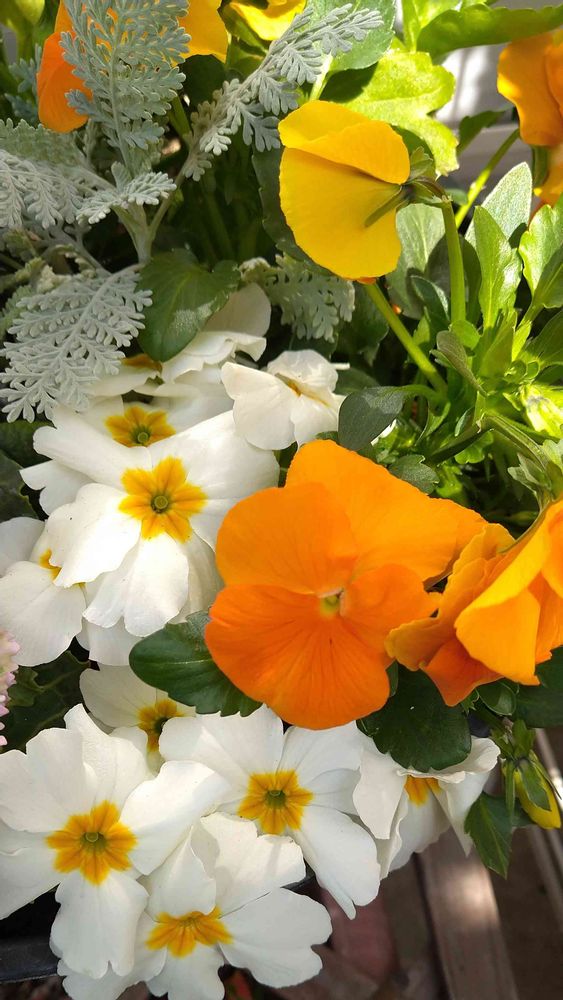 寄植えのビオラとプリムラ