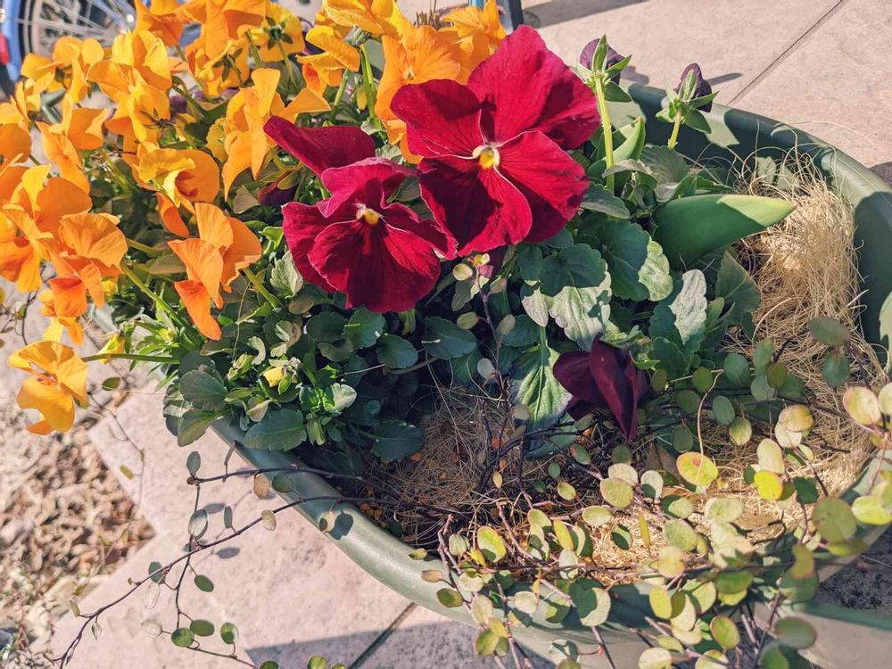 思ったより手前に植わっててパンジーがめり込んでた😅