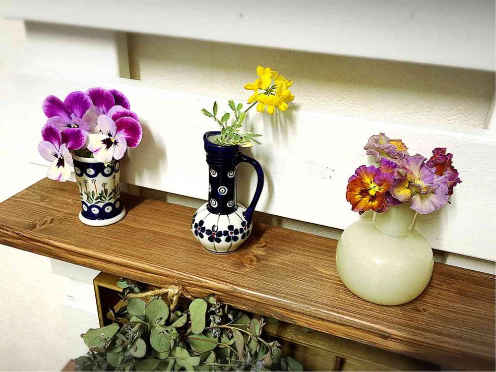 ポーランド食器は一輪挿しで、美大生の作品はガラス製の一輪挿しです💟