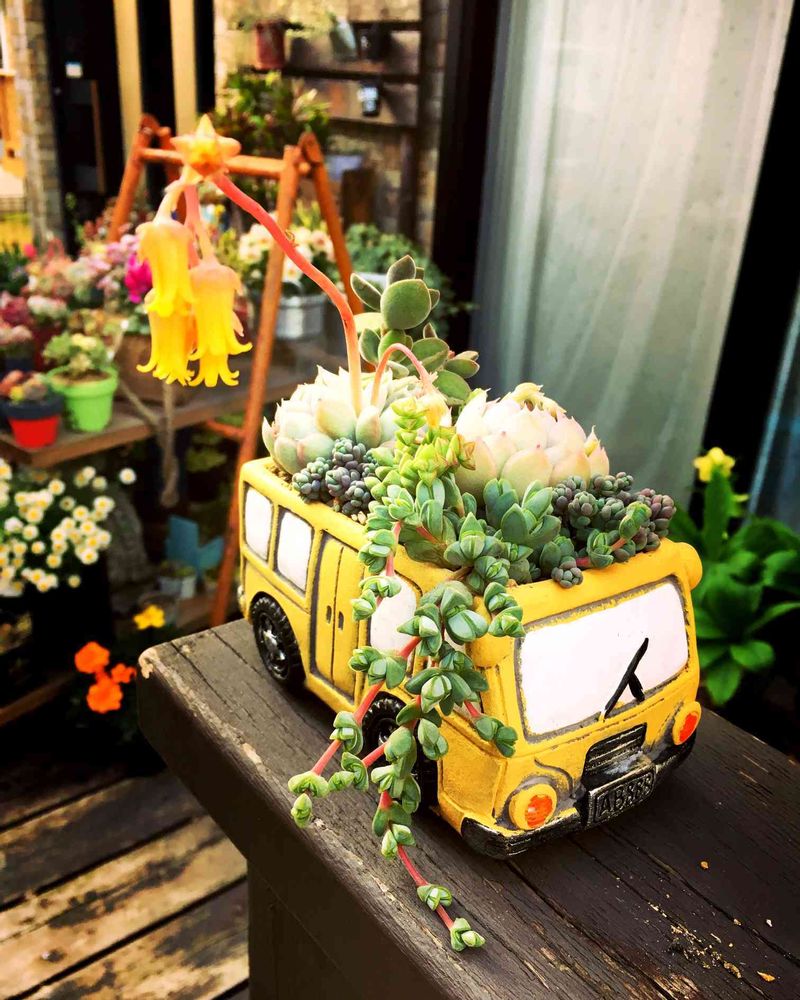 かわいいクルマに寄せ植え♥️