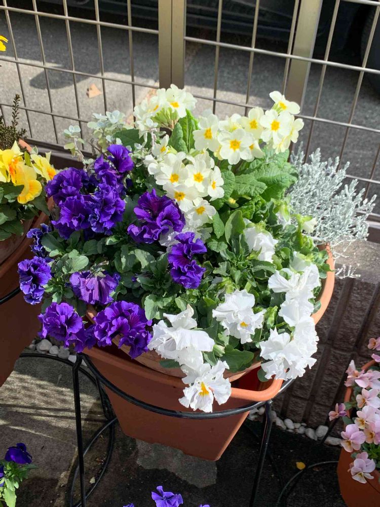 葉っぱばかりだったパンジーが、最近の暖かさで急に花いっぱい❣️