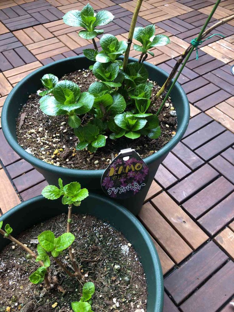 あじさいの新芽がぐんぐん大きくなってきてます。