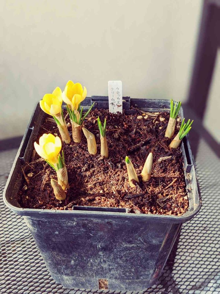 クロッカスも、あれもこれも鉢が倒れ