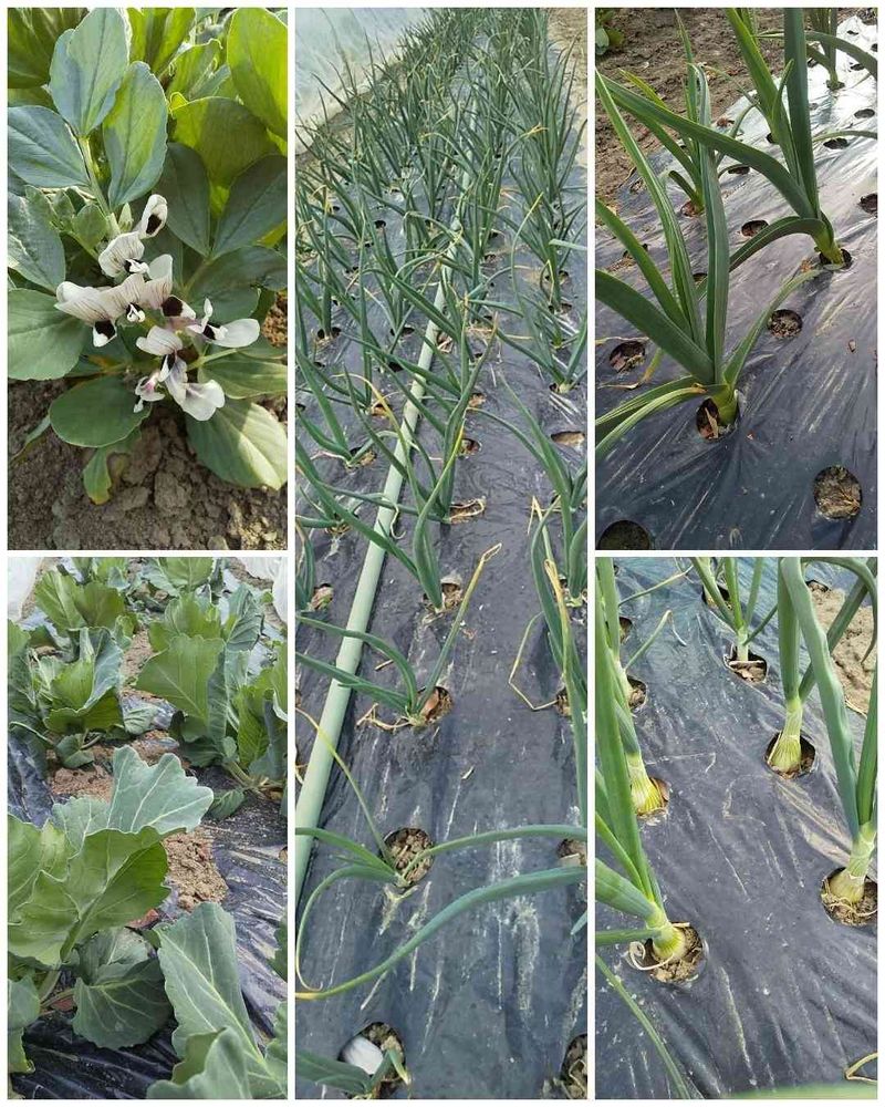 3/17朝、ニンニクとたまねぎに追肥。夕方、ソラマメにも追肥し土を寄せた。