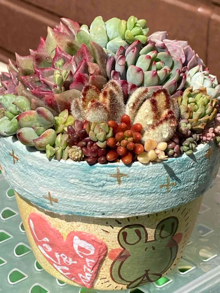先日買ったケラさんのリメ鉢を使い、✂️したアルジェ2個を入れてみました😊