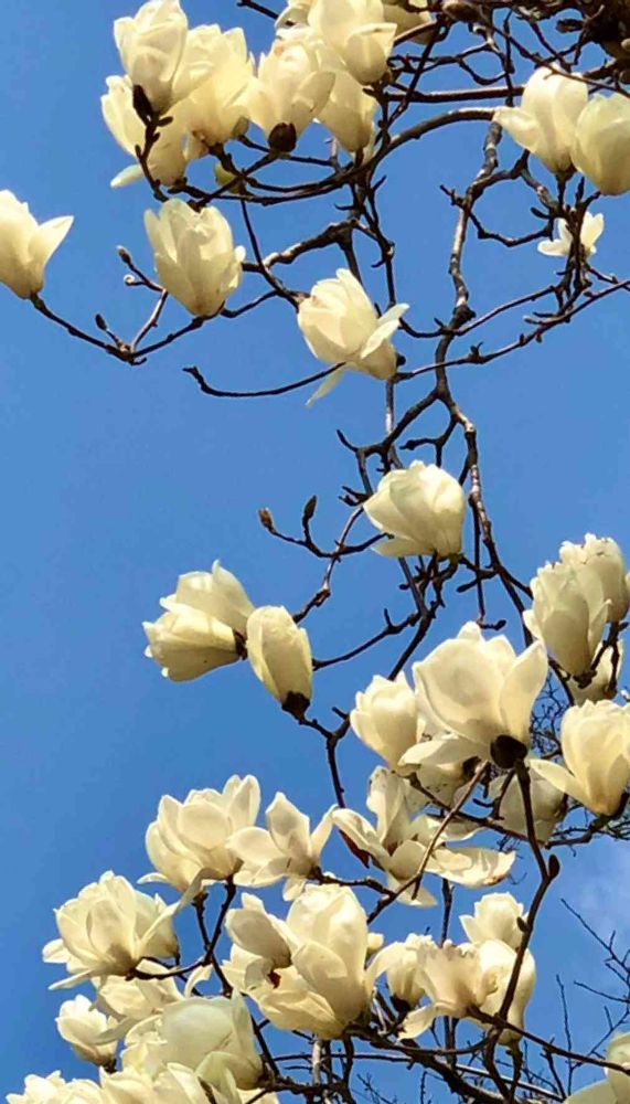 青空にハクモクレンが伸び伸びと咲いてる様が