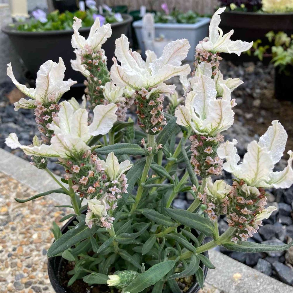 めちゃくちゃ大きい花が咲くフレンチラベンダー。きれいとかは別にして、とにかく花の部分の大きさにビックリ🤭