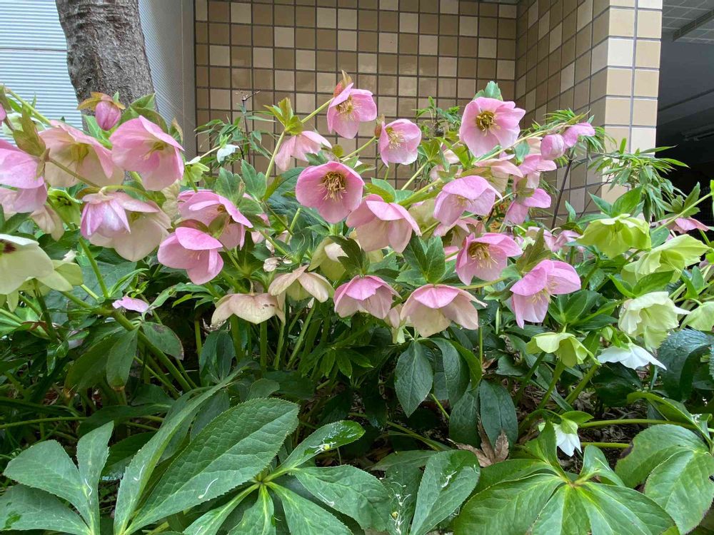 シンボルツリーの根元に植えられたクリスマスローズ✨✨