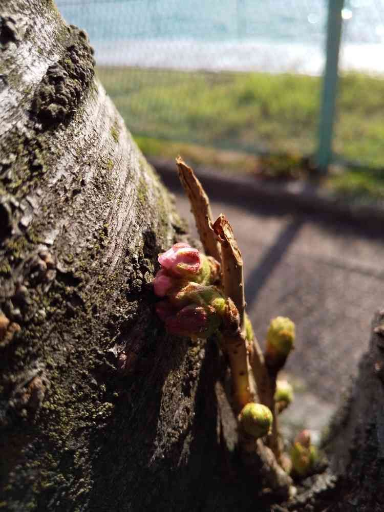 古い桜の木…の隙間に…おませな…ピンクの蕾ちゃん…