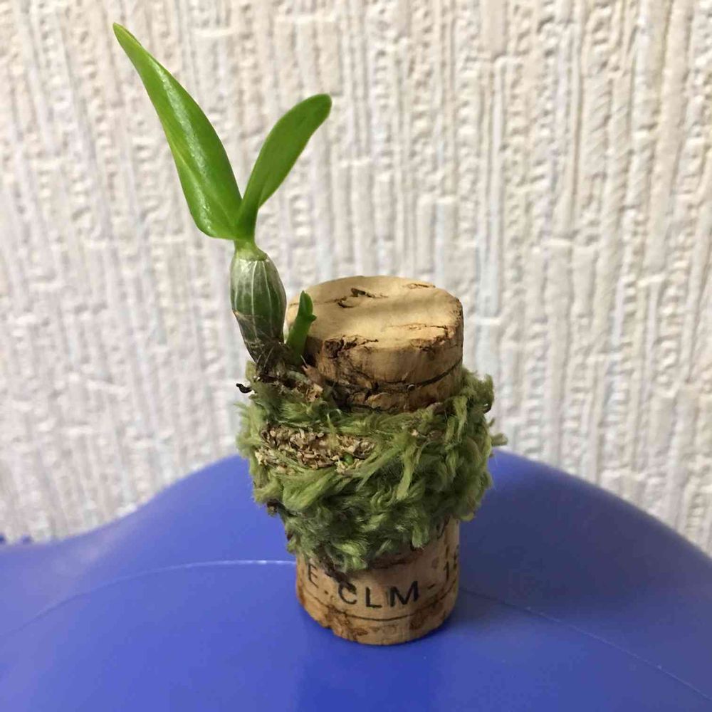 ワインのコルクにデンドロビウムの新芽を巻きつけたのが昨年秋の事。
