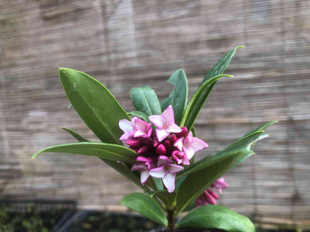 蕾は鮮やかなピンク色。なんて良い香り(*☻-☻*)揷し木で咲いた沈丁花にうっとり。