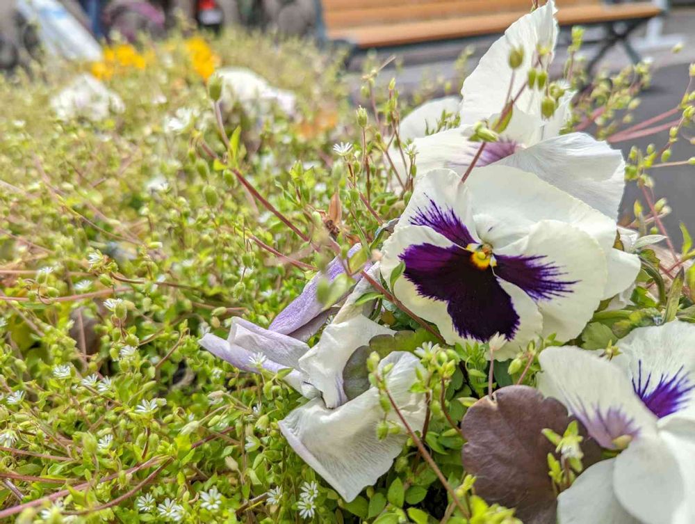 この間まで、パンジーだけ咲いてたのに、急な陽気で、コハコベやタネツケバナが押し寄せるように咲きだして。