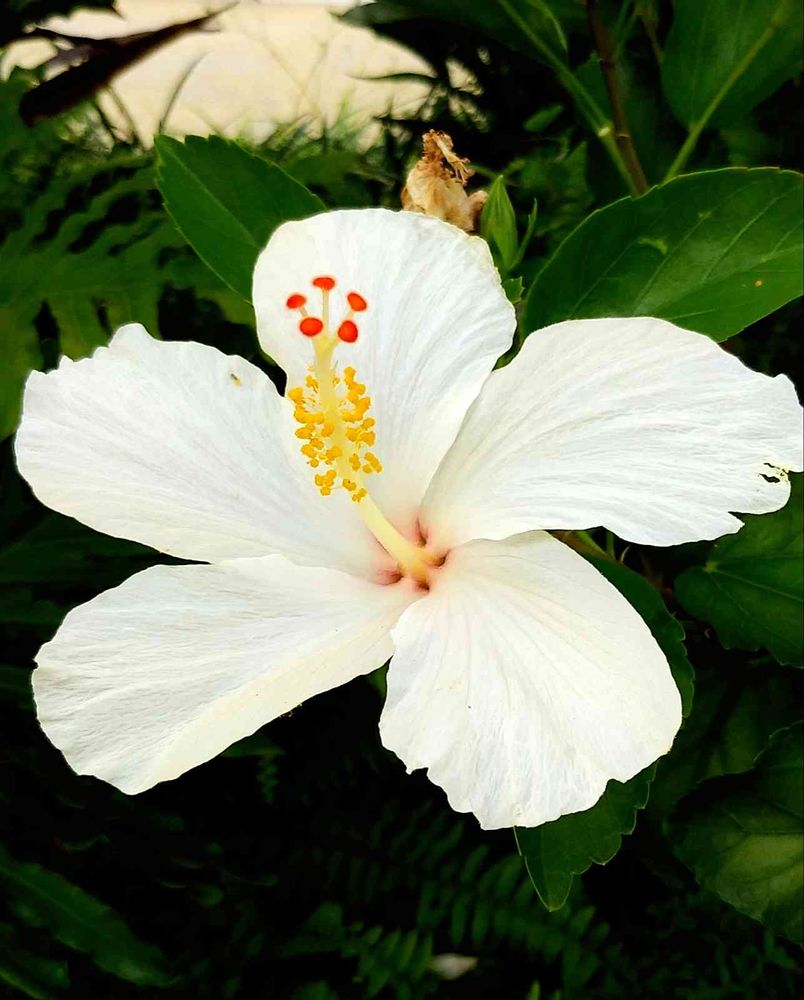 白のハイビスカス🌺オレンジのシベが映えてかわいい〜🧡( ु ›ω‹ ) ुL♡VE🤍
