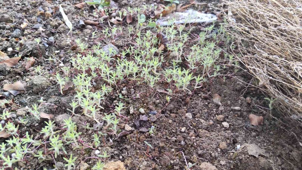 ほうき草(コキア)を抜いたあと、土の上に置いていました。どけてみたらびっくり‼️赤ちゃんがびっしり‼️
