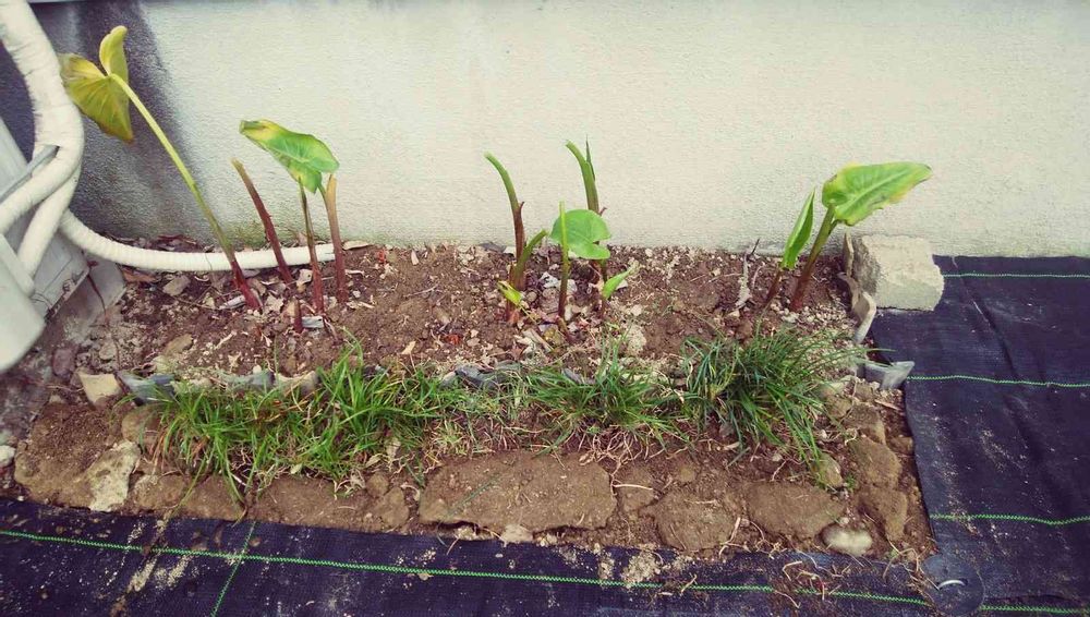 花壇の前のスペースが寂しかったのと、そこだけシートが足りなかったので、他の場所に蔓延りまくってた、りゅうのひげを移植してみました。植えるだけで雑草防止できるし良いかなーと思い。その周りは出土した謎のコンクリート片で埋めました。周りの土汚れも今日の雨で流されるでしょう……きっと。