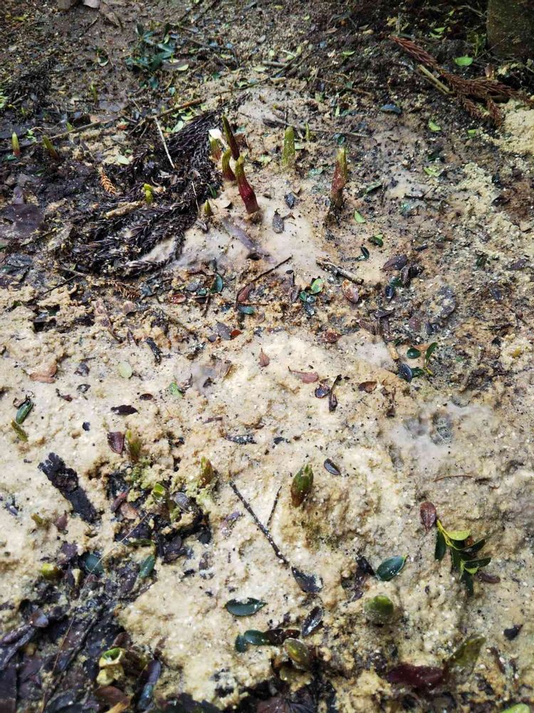 「行者ニクニク」も出てきました。白いの雪⛄️?ではなく「米糠」です😃昨年家庭用精米機購入、米糠を適当にそこらじゅうに撒いてます。今年は天ぷら、薬味にする予定😀