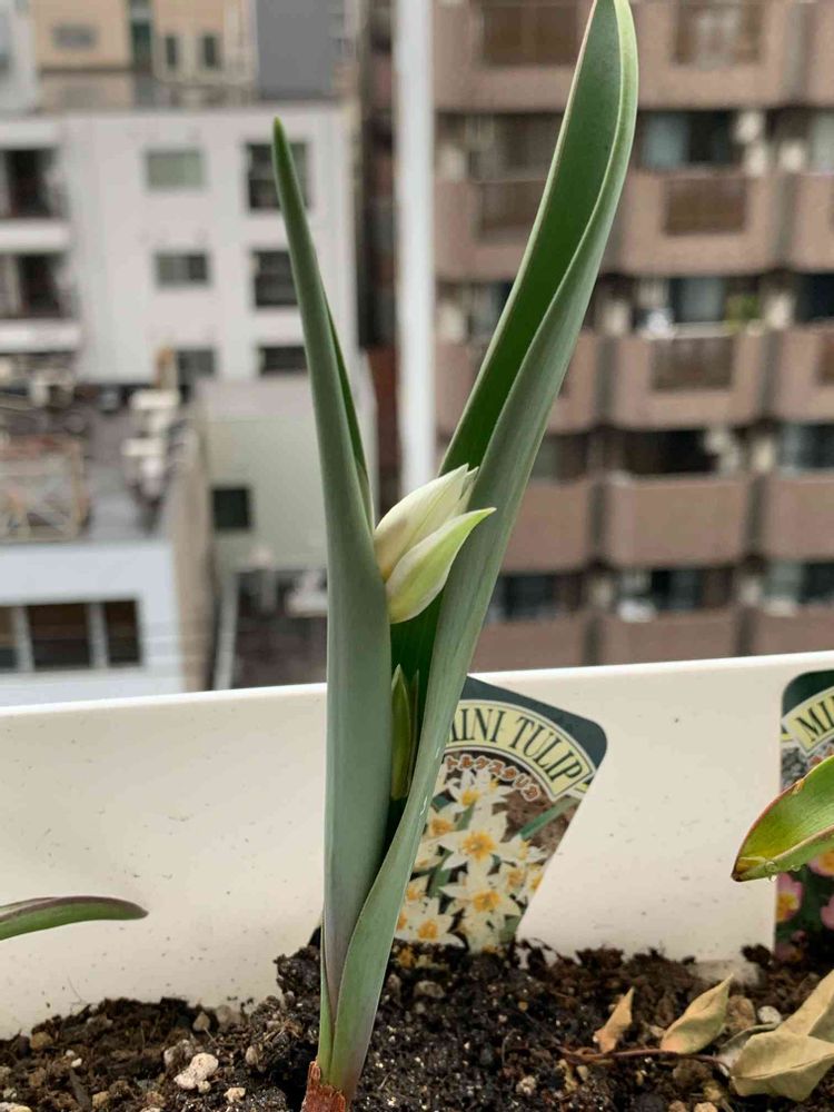 ミニチューリップの蕾がとうとう出て来ました🙆♀️小さいけどとっても可愛いですよ👍宜しくお願いします。本日は冷たい雨ですが、良い一日をお過ごしください🙏🍀
