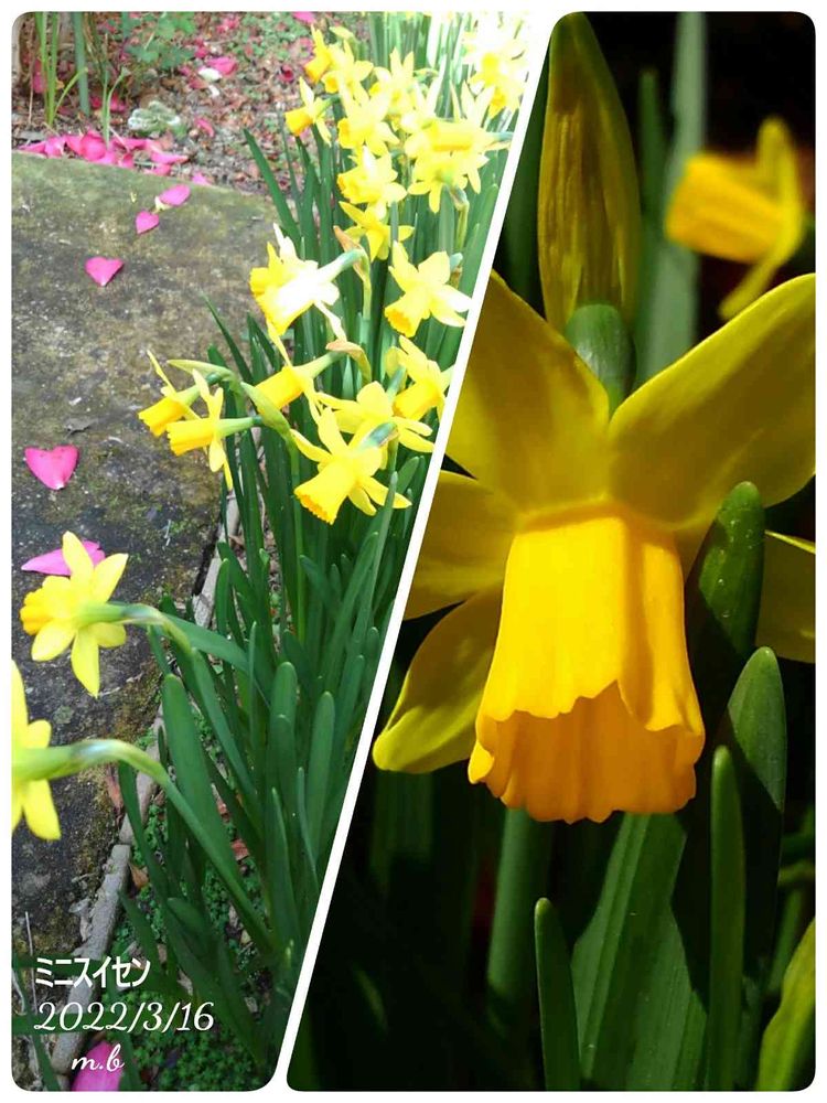 せっかく咲いたミニスイセンも半分位倒れてる~💦