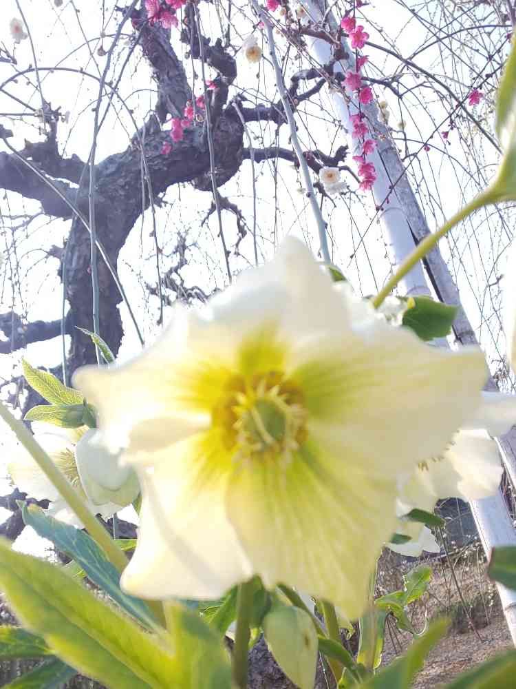 クリスマスローズ,枝垂れ梅,青空の投稿画像