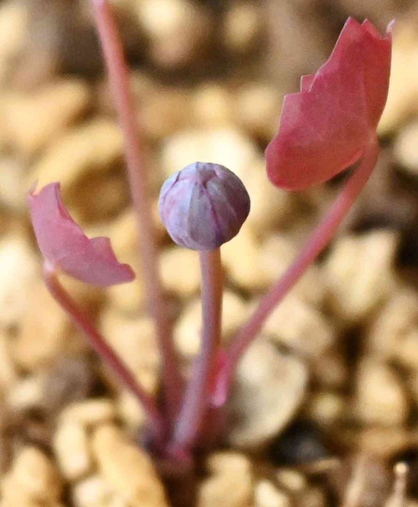 紅い葉っぱと一緒に顔出した、《竜田草》のツボミ🥰