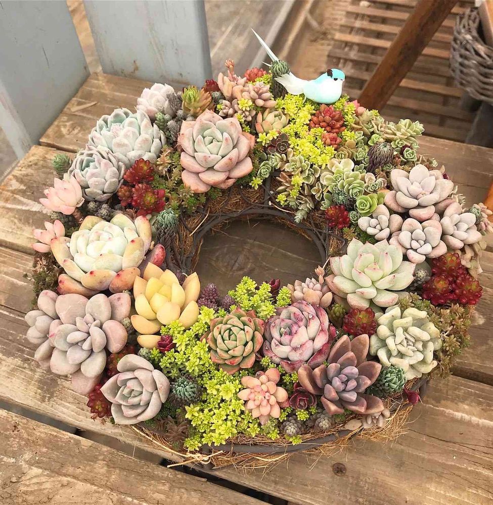 今日の写真は先日行った河野自然園さんに飾ってあった多肉のリースです。