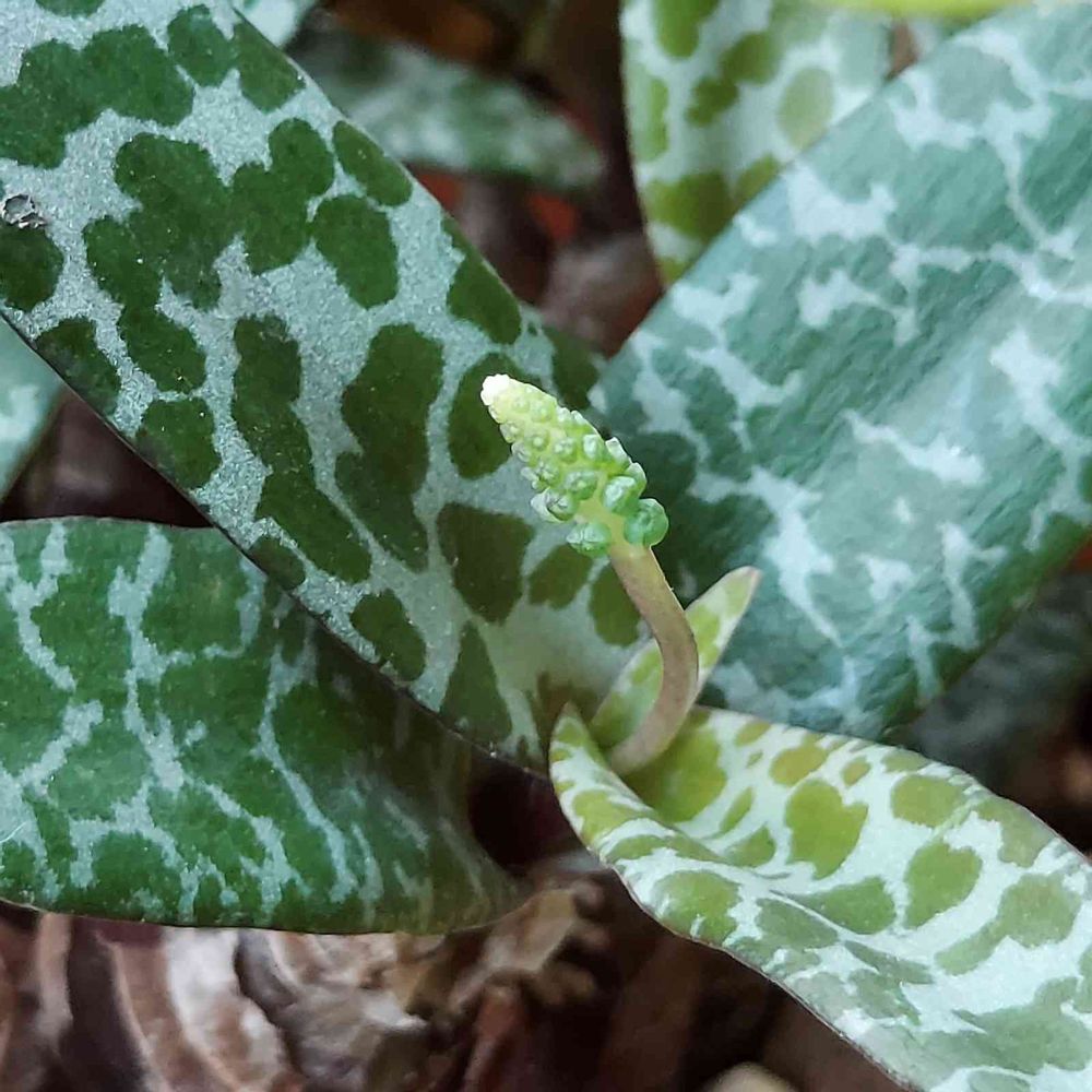葉っぱが豹柄なので…豹紋ともいいますね!✨花芽です!すごく小さいですが、ベル🔔形のお花が沢山咲きますよ~!とても可愛いです!私も好きです!🎶😄