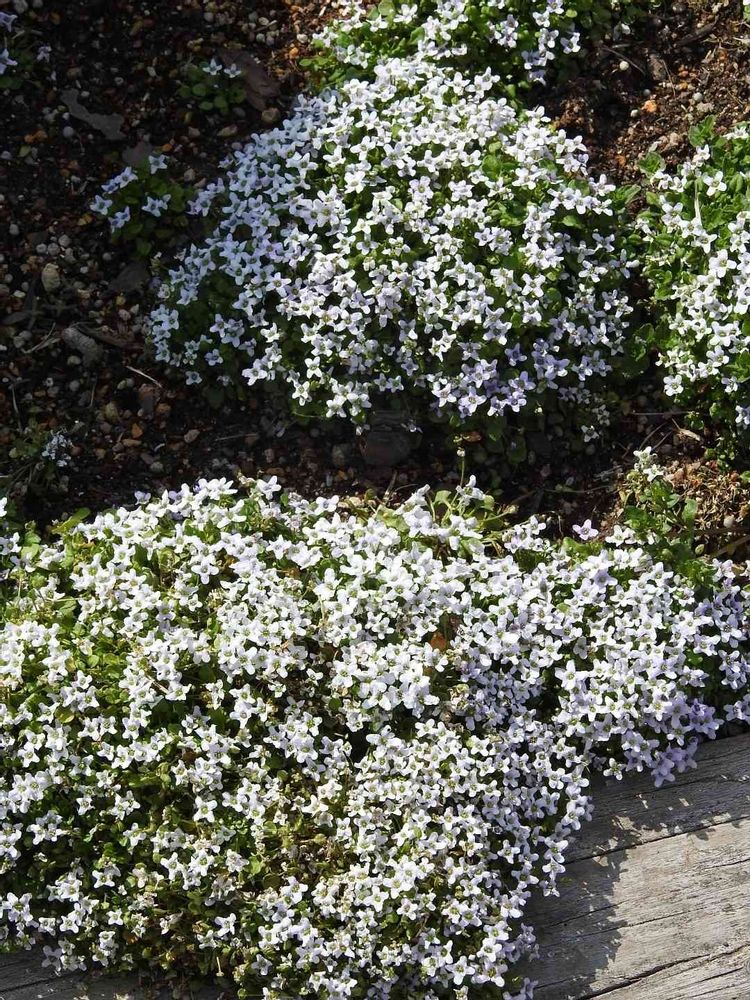 公園⛲の園路脇のボランティアさんの小さな花壇でモリモリと咲き誇る可愛い花💮イオノプシジウム💮