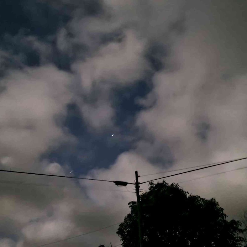 ワームムーンは見えませんが雲間に星がひとつまたたいていました。20時42分の空