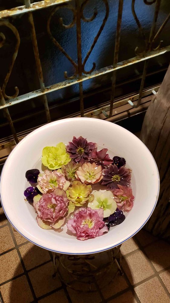 庭で咲くクリスマスローズを摘んで 玄関での水鉢を楽しんです🎵