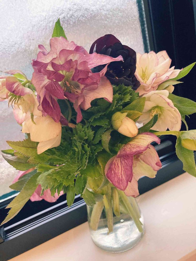 れいちるさんの窓辺,クリスマスローズ,ラナンキュラスグリーンの投稿画像