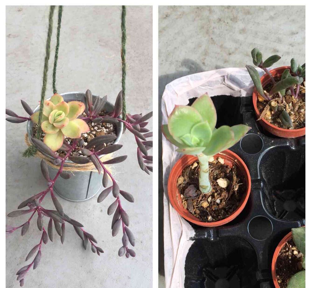 そろそろルビーネックレスを吊るしてあげたいと思い、あり合わせのものでハンギングを作り、植えてみました!