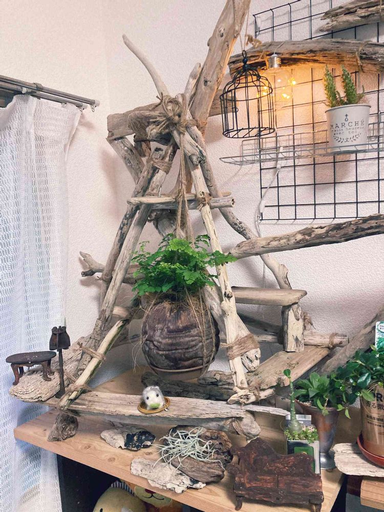 こんばんは。流木は環境にやさしいし、ナチュラルで唯一無二な感じが良いですよね!仕事めっちゃ早い。素敵です🥰